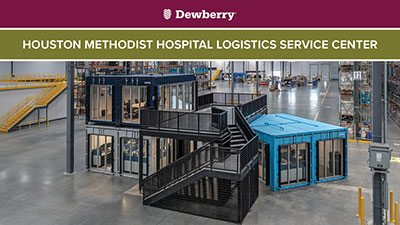 Houston Methodist engaged our design team to consolidate its logistics operations from multiple sites to a single leased space. To accomplish this, we designed the 1.3 million-square-foot distribution center cross-dock lease space that includes high-piled storage, secured IT storage, a biomedical department repair shop, a truck fleet shop, an employee fitness center, off-site training rooms, and office space.